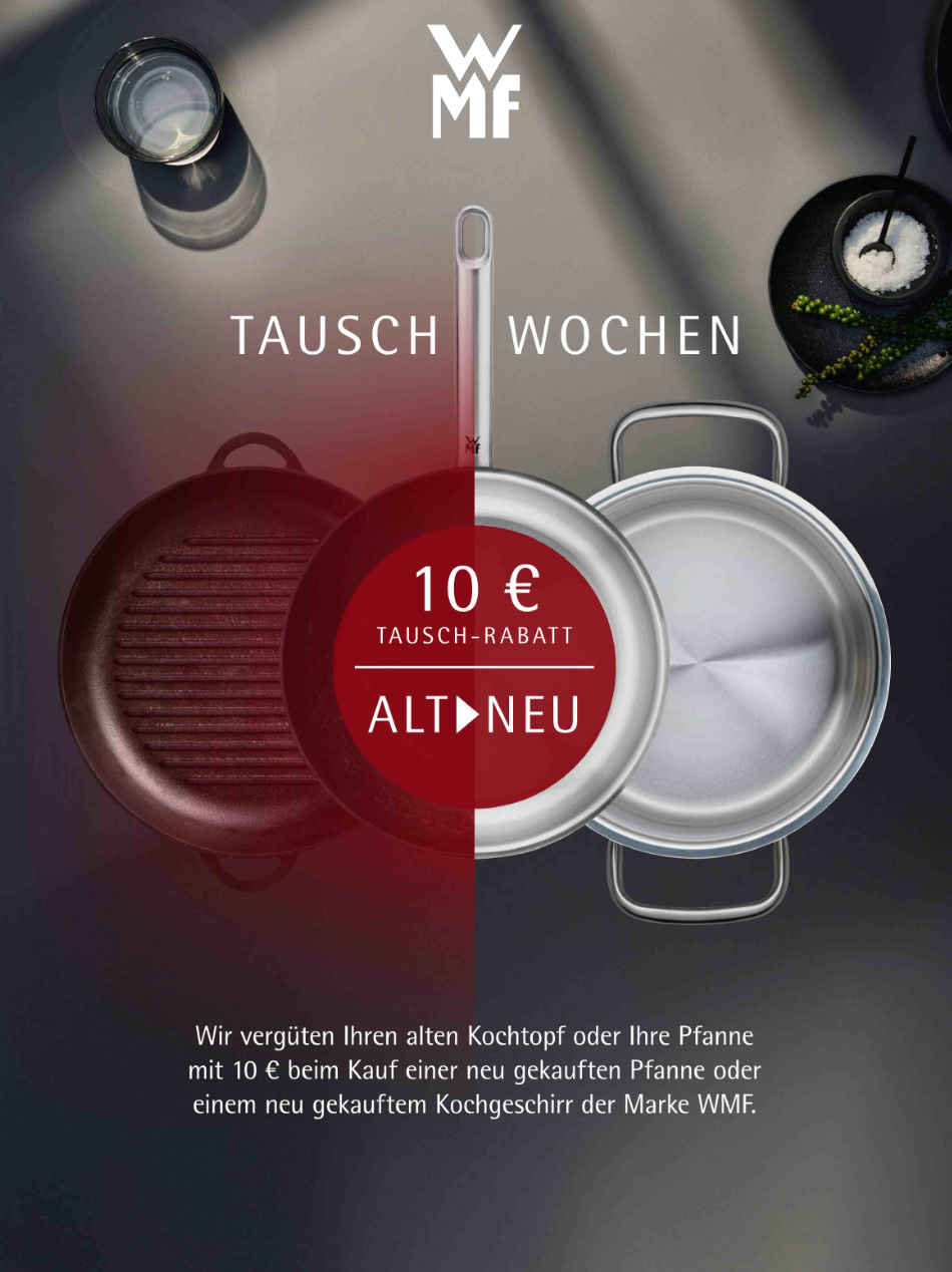 Bringen Sie eine alte Pfanne oder einen gebrauchten Kochtopf und erhalten Sie beim Kauf von WMF Kochgeschirr € 10 Rabatt.